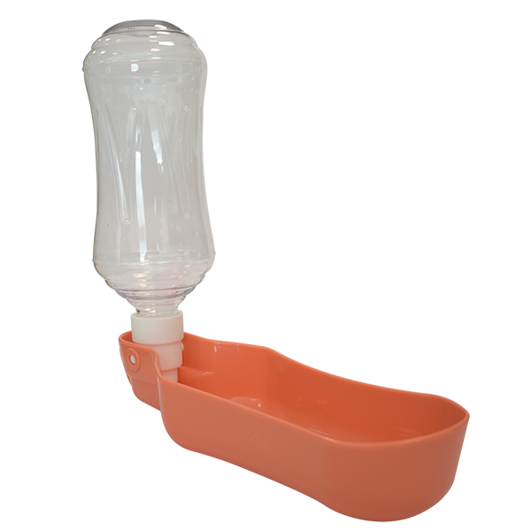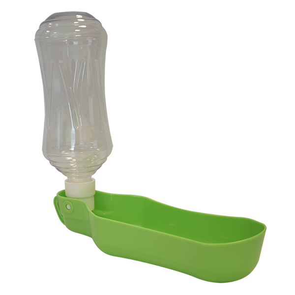 El bebedero portátil para viaje, es la manera más práctica de proporcinarle agua fuera de casa a tu pequeño. La botella resguarda de manera correcta el agua que mediante gravedad podrá ser servida en el bebedero con capacidad de 500 ml.
