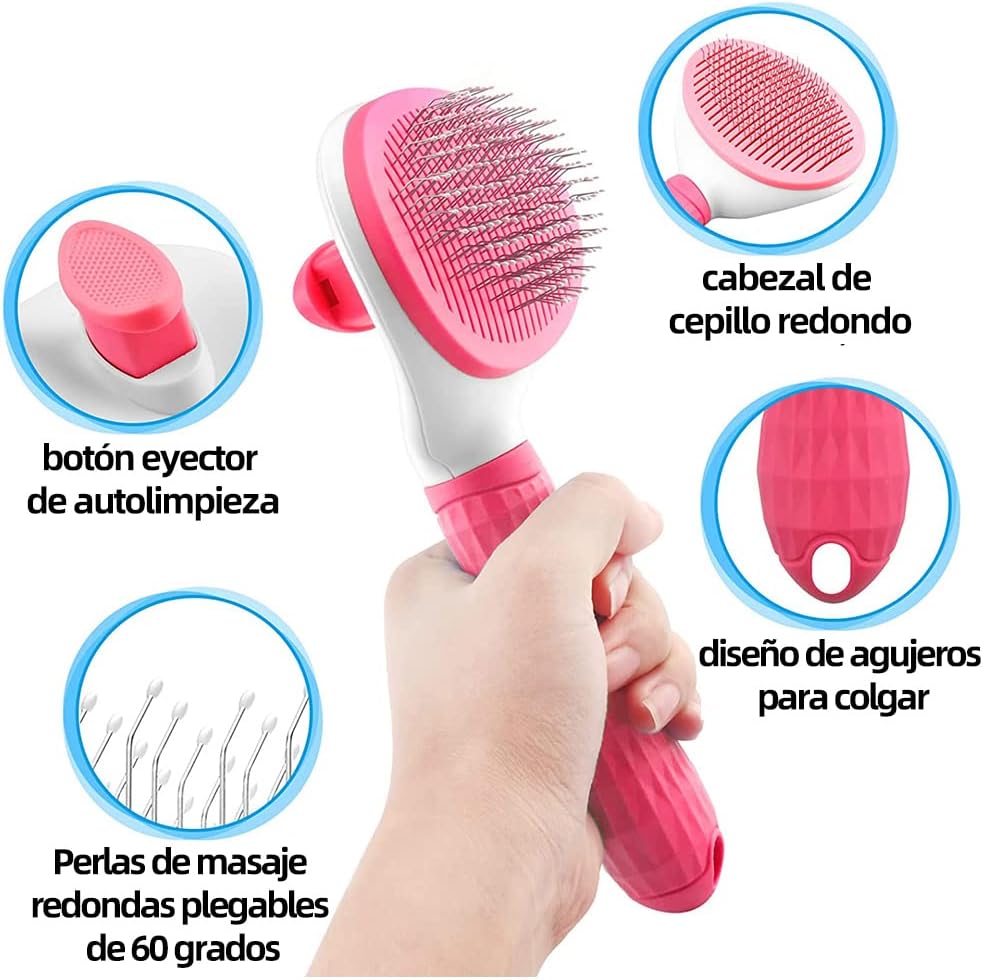 Fácil de Usar: Después de peinar el pelo de la mascota, simplemente presione el botón para eliminar rápidamente el pelo de la mascota del cepillo para gatos.