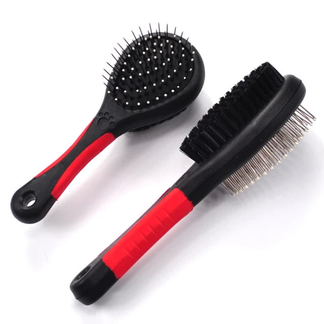 Peine de doble cara para mascotas, cepillo de Pelo Largo con mango de plástico, cepillo de baño de masaje para perros y gatos, herramienta de aseo para mascotas multifunción.