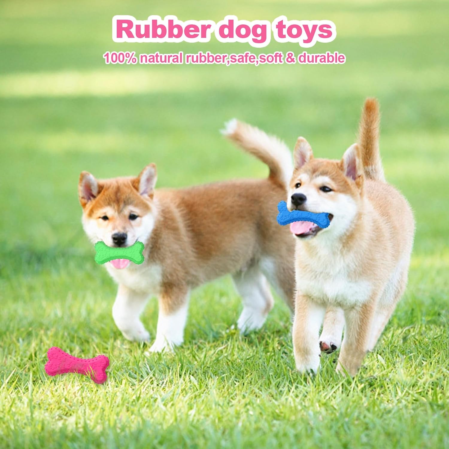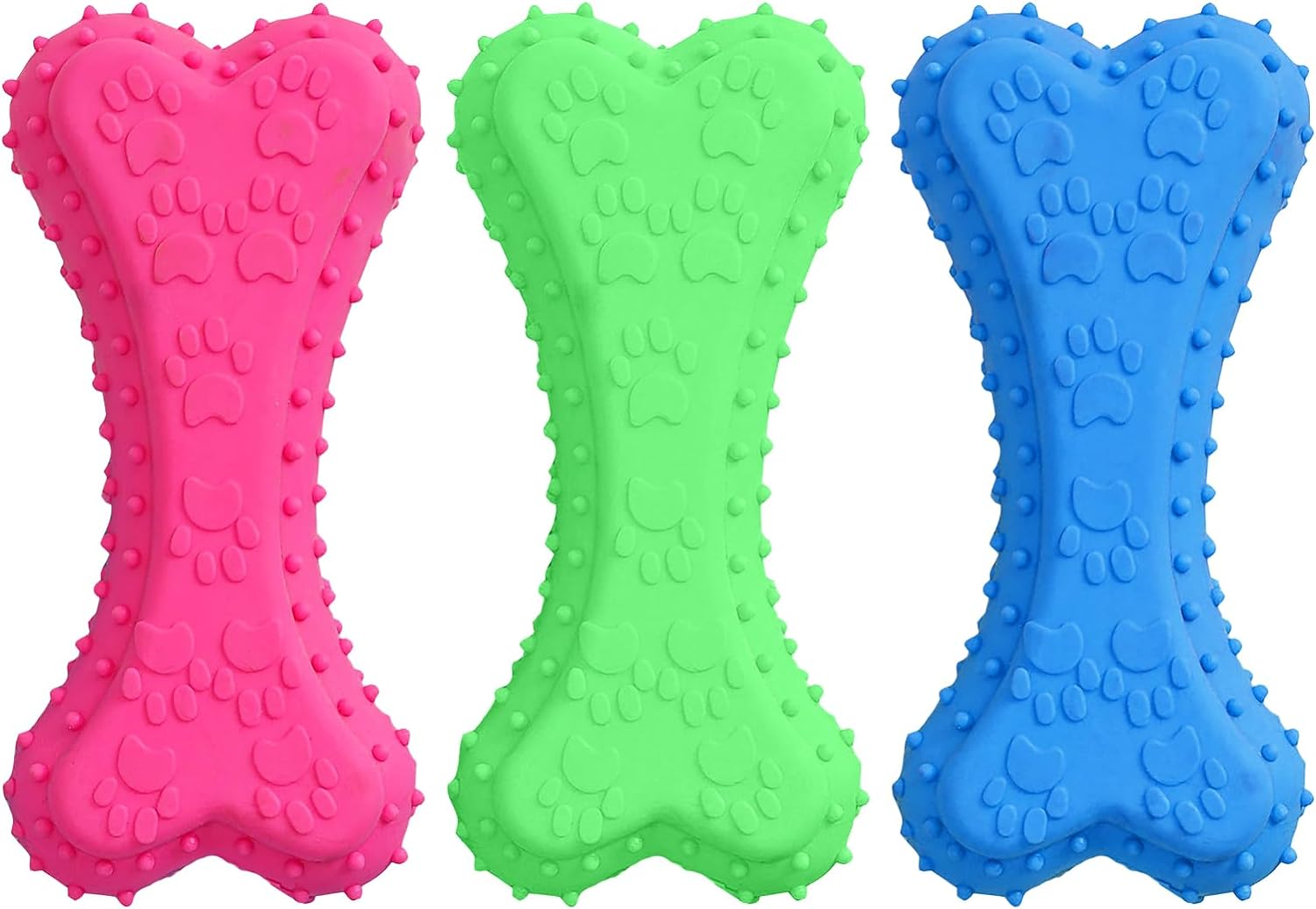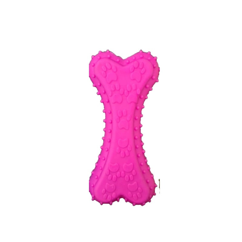 Juguete de goma masticable texturizado con sonido en forma de hueso, ideal para el manejo del estrés y aburrimiento de tu mascota.