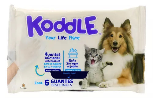 Guante húmedo de textura suave de aseo para mascotas, su fórmula hipoalergénica humecta y suaviza la piel y el pelo ayudando a eliminar malos olores y suciedad en la mascota. Producto no tóxico, no requiere el uso de agua ni jabón.