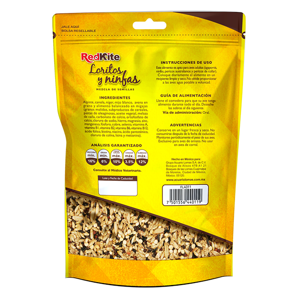 Mezcla de semillas en una fórmula balanceadapara ofrecer a ninfas, pericos autralianos, agapornis y pericos de collar. La mezcla además contiene pellets fortificados con vitaminas y minerales que contribuyen en la buena salud de su aves.