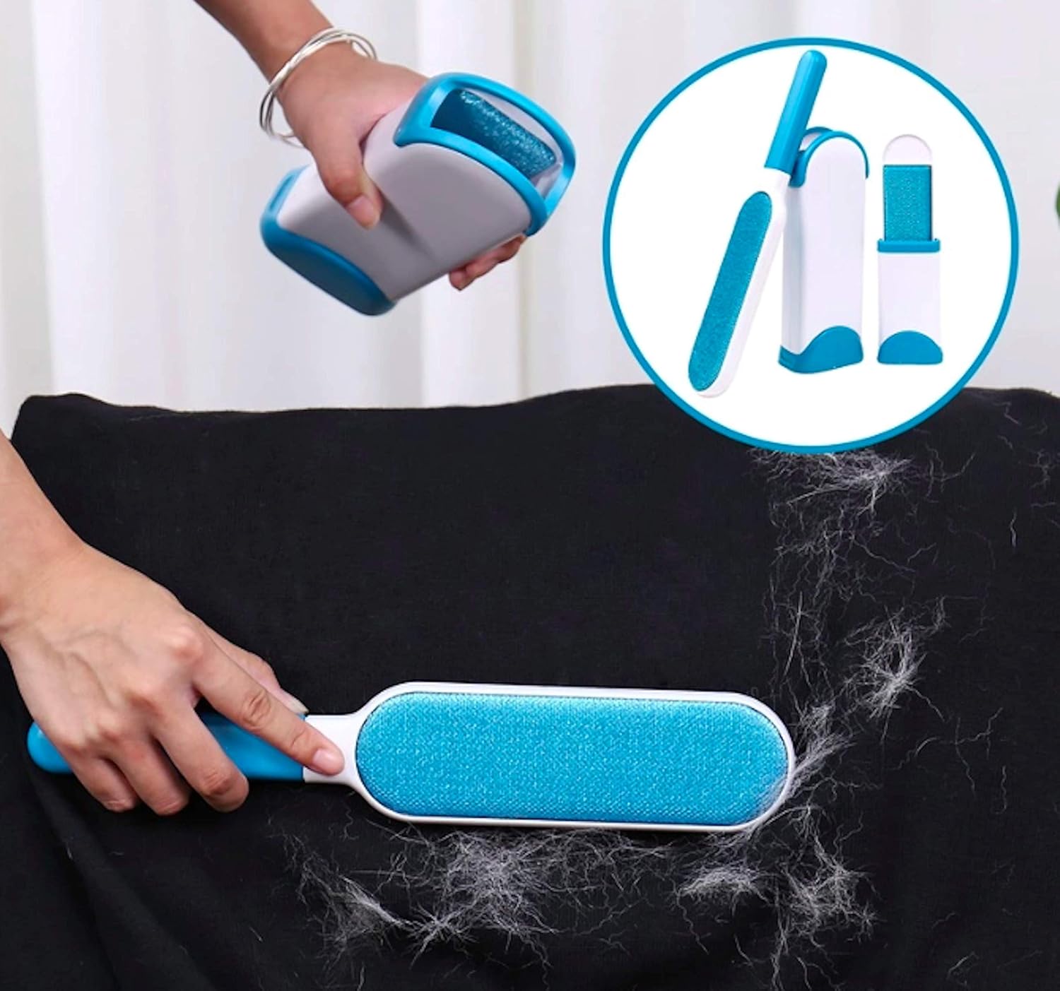 - Cepillo removedor de pelo y pelusa de perro, gato y mascotas.