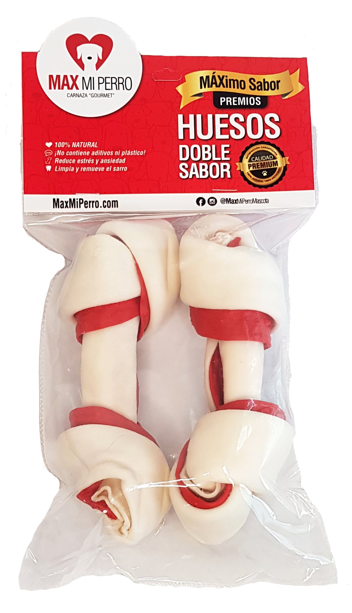 Hecho 100% de carnaza de res natural. Compuesto con dos tipos de carnaza, blanca (sabor natural) y roja (sabor tocino), esta última es flexible gracias a su innovador proceso de elaboración. Esto hace que nuestro peludo disfrute más y por mayor tiempo de una forma más segura.