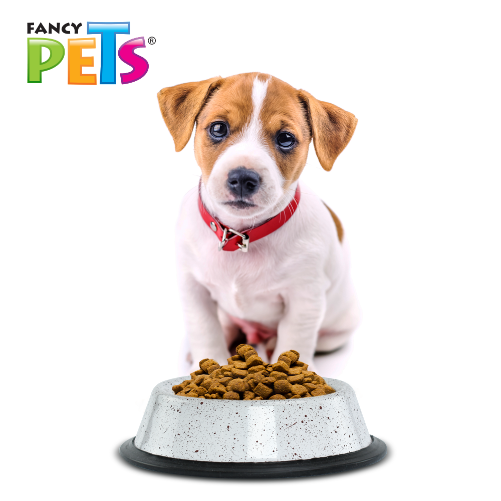 Plato de acero inoxidable para perro con contorno antiderrapante en la base, ideal para alimentar o hidratar a la mascota.