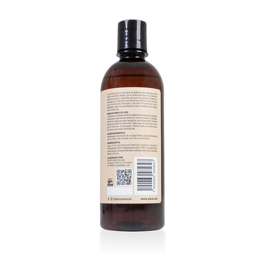 Shampoo Alnut hipoalergénico para perro y gato, libre de sulfatos y parabenos, con extractos de áloe vera y avena. Nuestro SHAMPOO ALOE VERA & AVENA esta elaborado con materias primas de muy alta calidad, al NO contener en su formula SULFATOS y PARABENOS, es la mejor opción para nuestra mascota, esta formula es ideal para pieles sensibles, ayuda para contrarrestar la irritación, humecta y acondiciona el pelaje, ideal para perros y gatos de todas las edades.