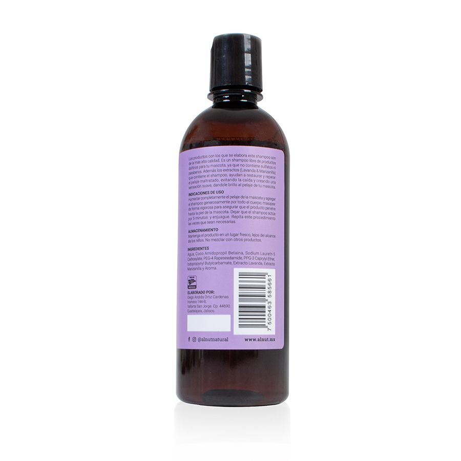 Shampoo Alnut hipoalergénico para perro y gato, libre de sulfatos y parabenos, con extractos de lavanda y manzanilla. Nuestro SHAMPOO PARA PERRO Y GATO DE LAVANDA & MANZANILLA esta elaborado con materias primas de muy alta calidad, al NO contener en su formula SULFATOS y PARABENOS, es la mejor opción para nuestra mascota, esta formula es ideal para restaurar y reparar el pelaje, previene la caída y da brillo del pelo, ideal para perros y gatos de todas las edades.