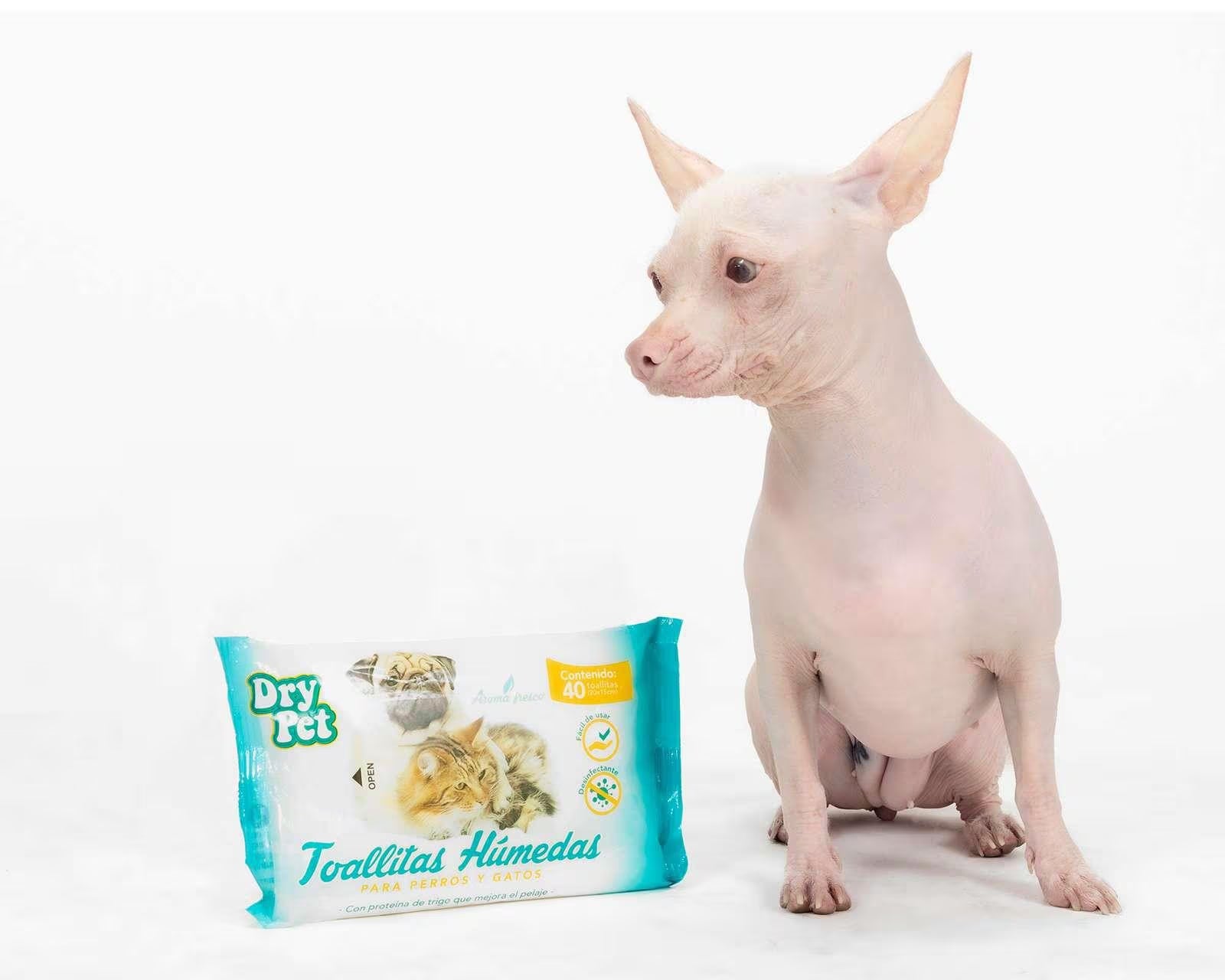 Toallitas húmedas para perro y gato, con proteína de trigo que mejora el pelaje.